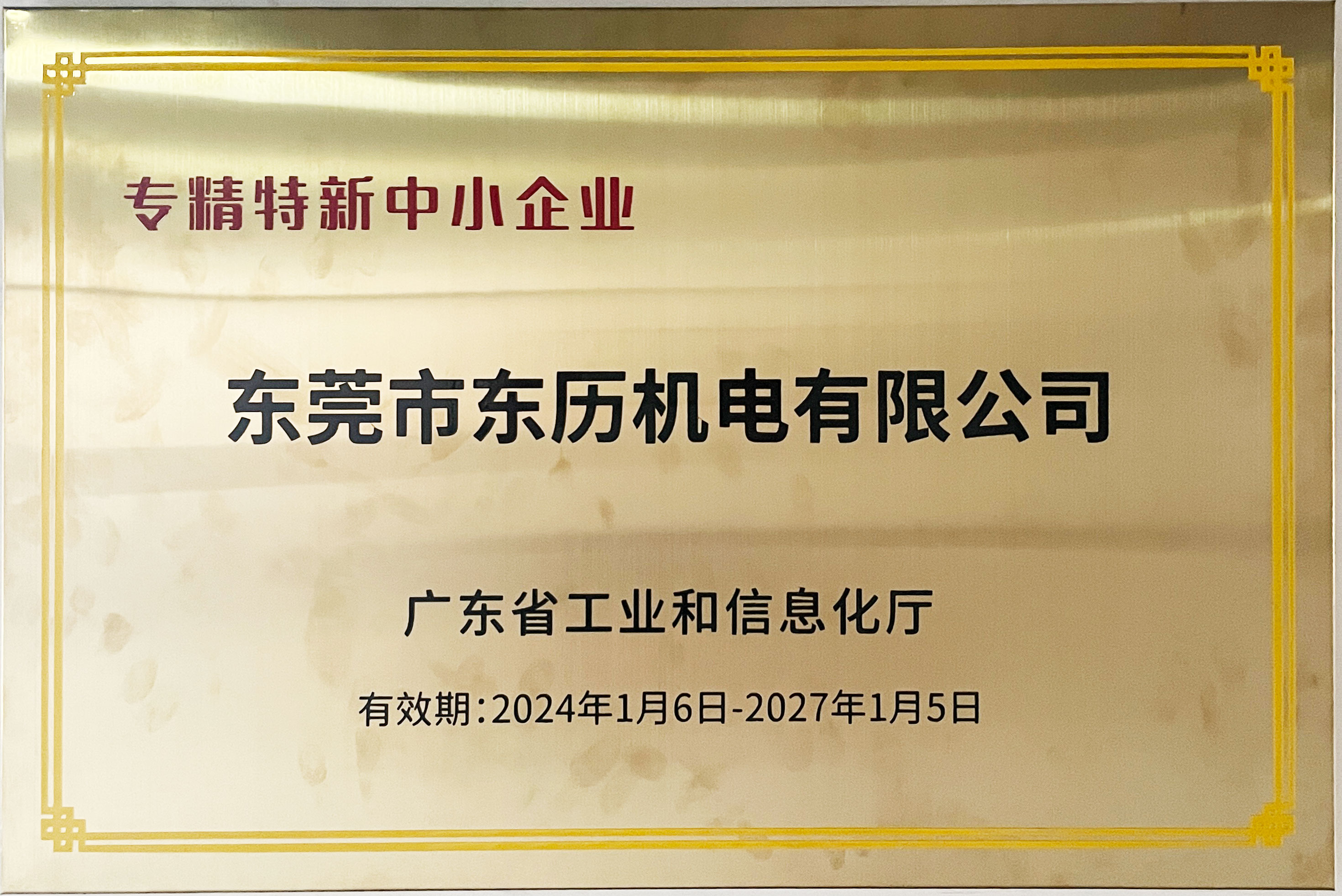 熱列祝賀東歷機電榮獲廣東省“專精特新”企業稱號